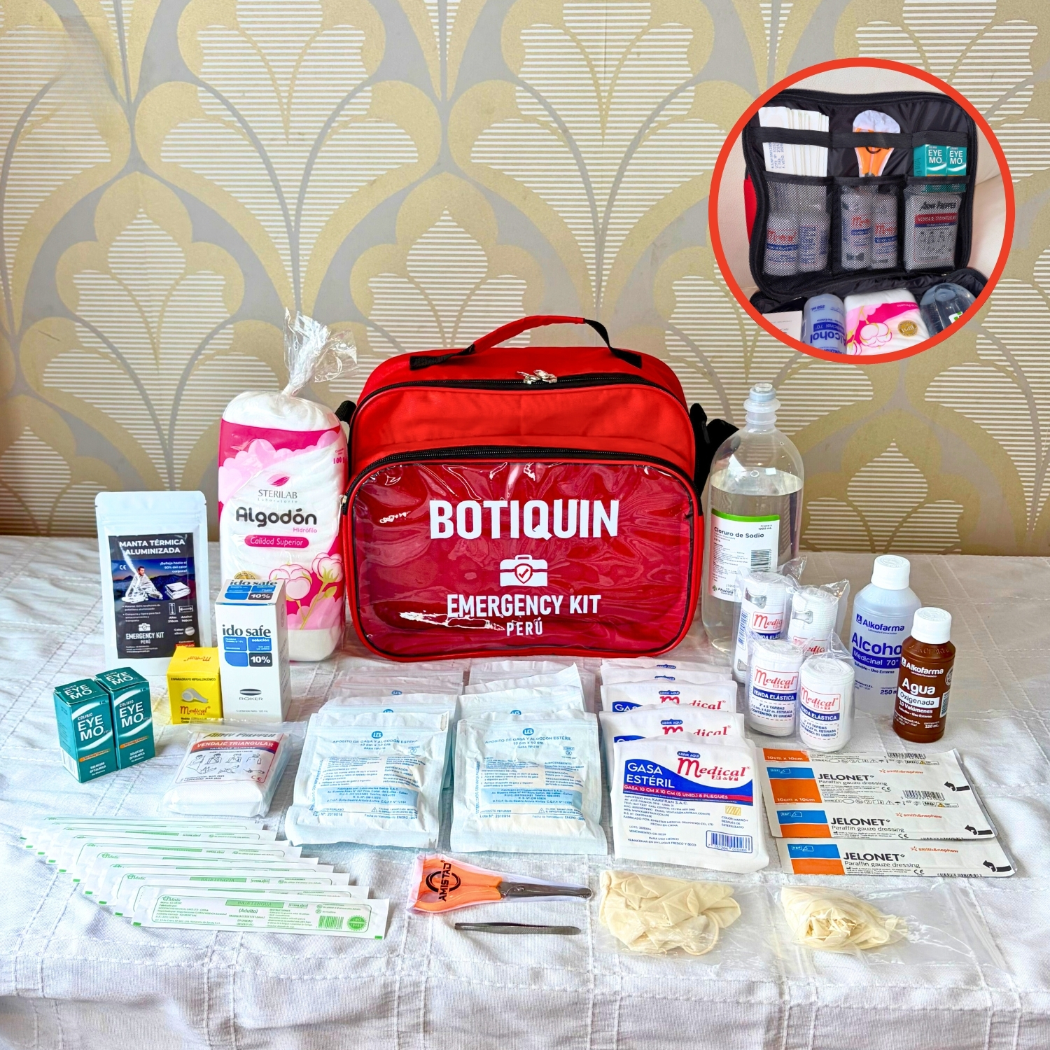 - Contenedor: maletín de nylon de alta calidad, con dos compartimentos, cierres reforzados, y tapa transparente que permite visualizar los contenidos. Además, incluye asa para transporte y asa larga tipo morral.